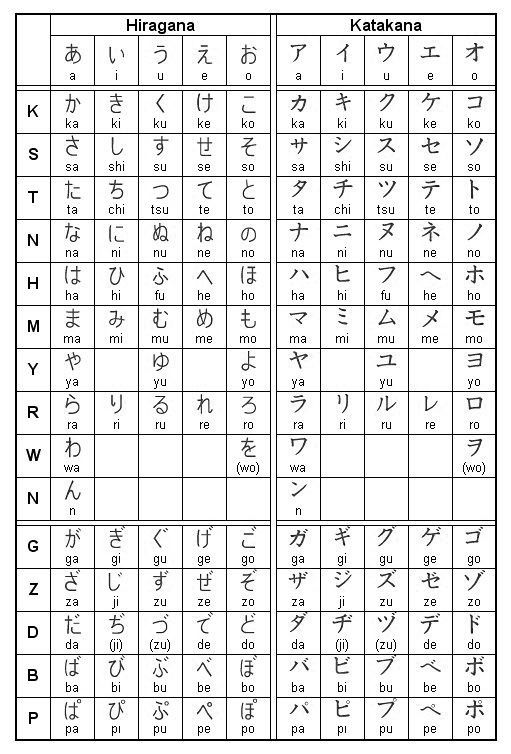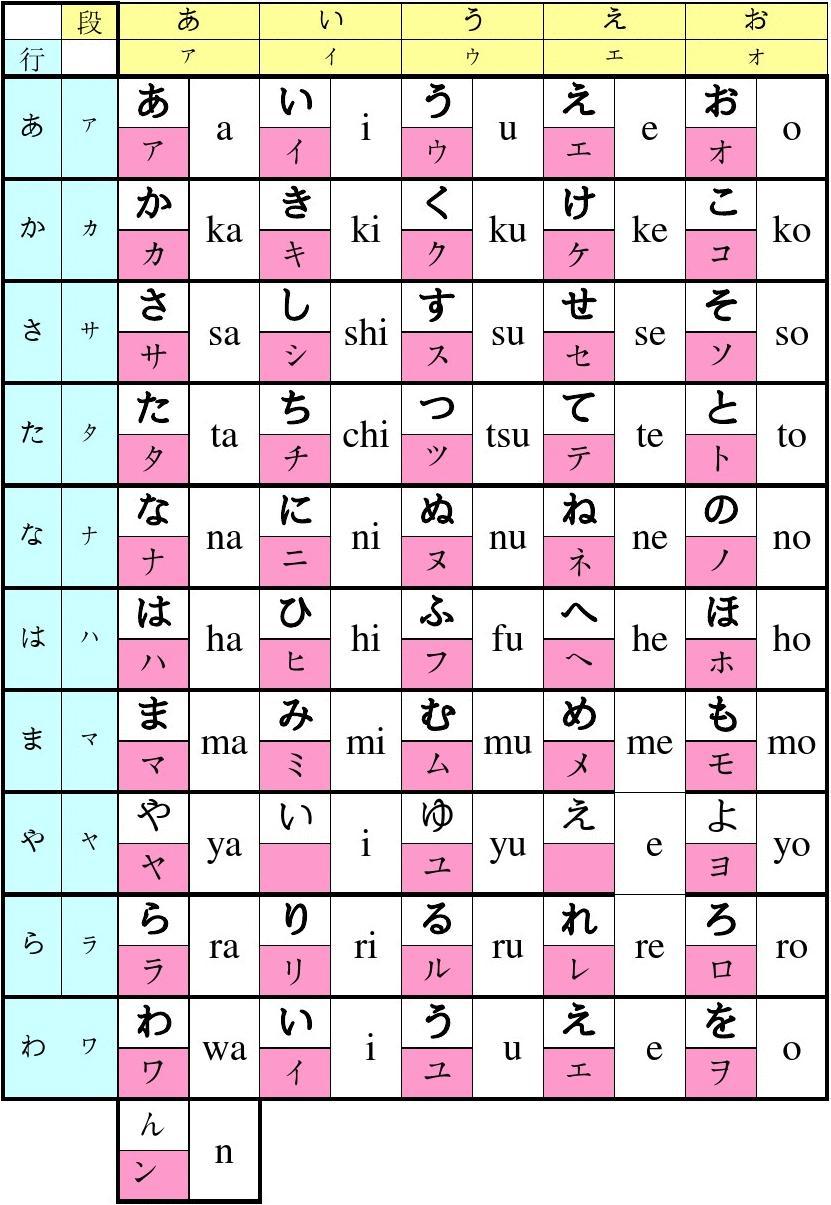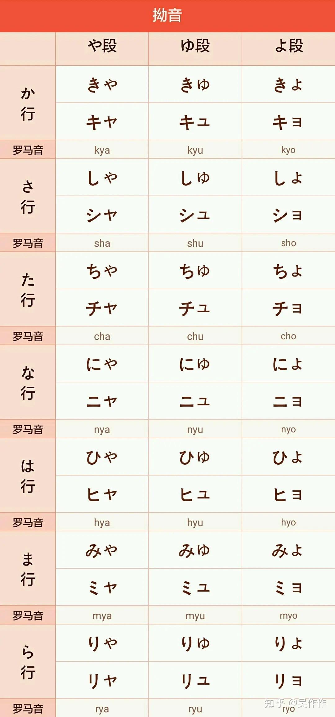 | 平假名 | 片假名 | 罗马音 | 备注 |