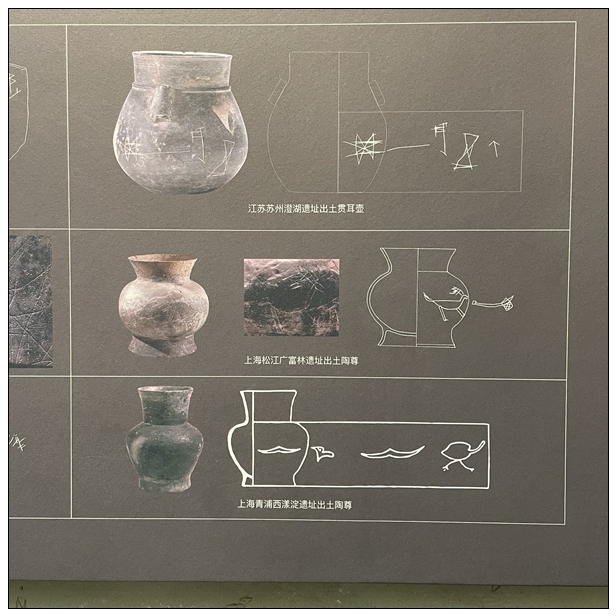 良渚文化处于新石器时代,玉石文化晚期,陶器已经出现。良渚人也在盆盆罐罐上刻上自己所思所想。有些可能代表太阳,有些像一只鸟,有些是一只动物,笔划简单,意象丰富。记录的价值,随着时间的推移,其价值才逐渐显现。个体的表达在写写画画之际,于己而言,意义已生。我们平常太囿于自己不够好/不够专业的想法了。