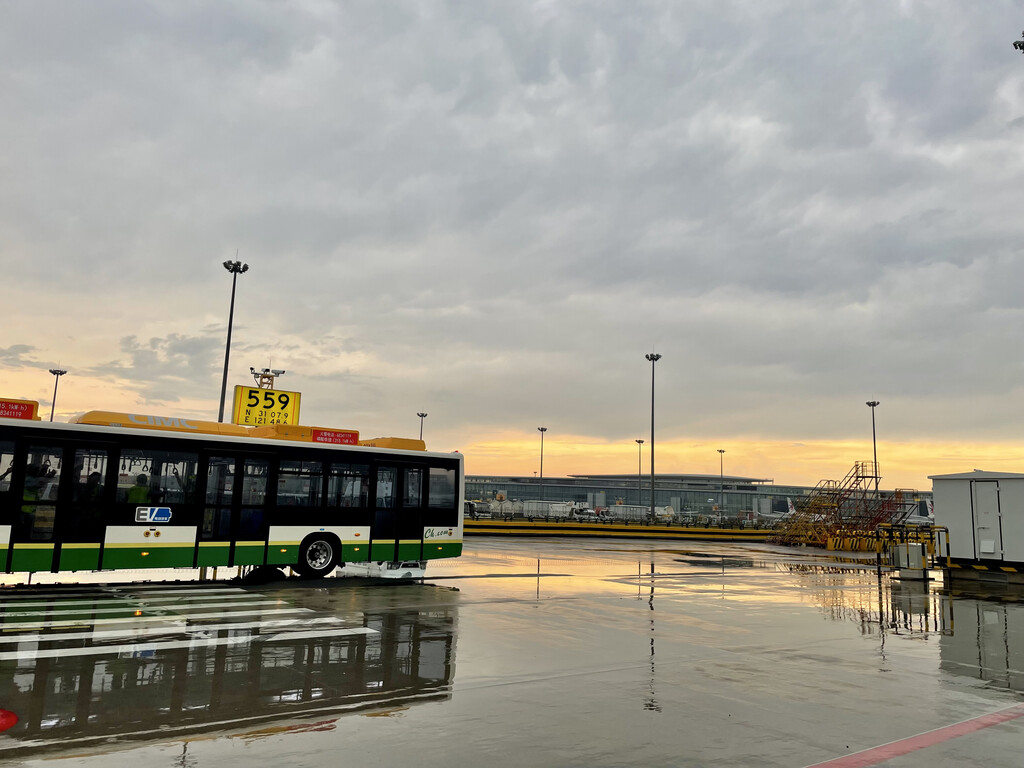 乘摆渡车去登机时雨停,飞行过程也顺利,历经2h左右,17:45到大阪;时差1h,大阪本地时间18:45。