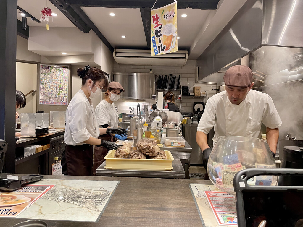 点餐过程很有意思,自助机器点单,点好拿到凭条,有人领位,座位是互相挨着的小格子,一人一个小格子吃面,格子的另一面是服务员,但是客人和服务员之间隔着一个帘子,送餐的时候帘子打开。能听到服务员声音,看不到服务员的脸。很有效率,但像囚犯。相比之下,还是一寸法师好。