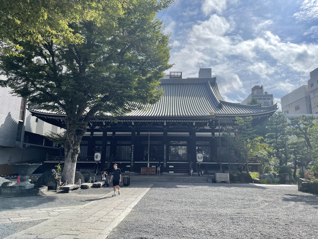 先去本能寺。吃完饭,沿河原町通往北至市役所,附近参观本能寺,沿三条步行至鸭川,沿鸭川步行至四条回酒店。
