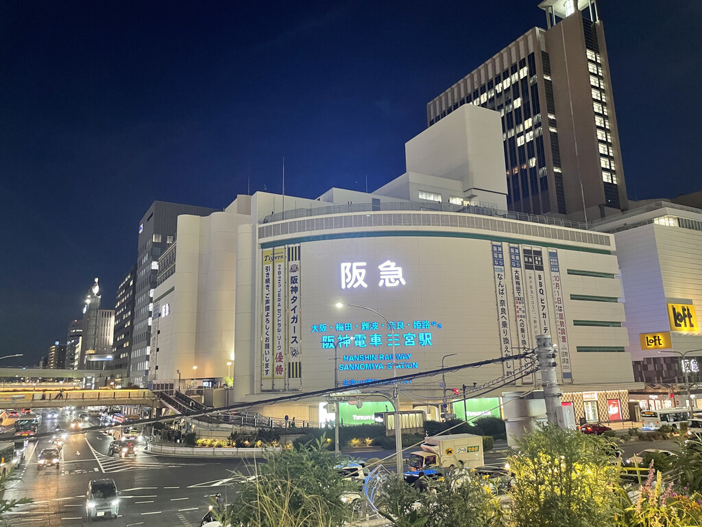 到阪急六甲站下车,去乘阪急电车,六甲至神户三宫,很快。