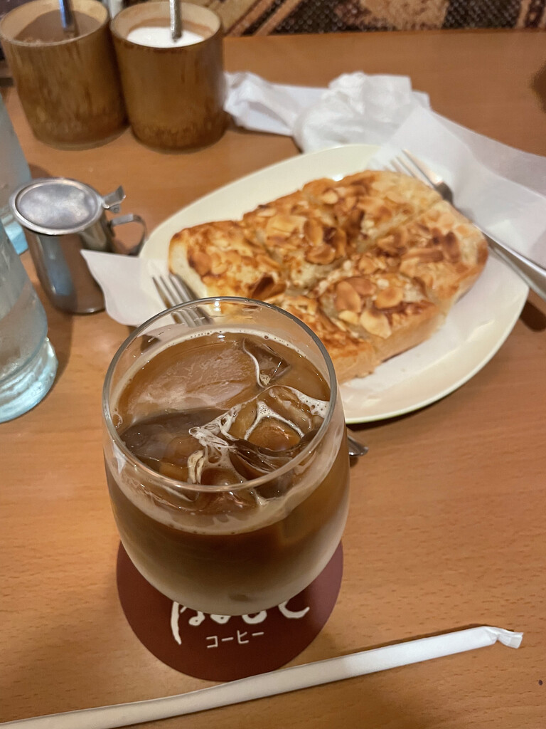 酒店早饭;去711买冰拿铁,又是拿错杯盖的一天。