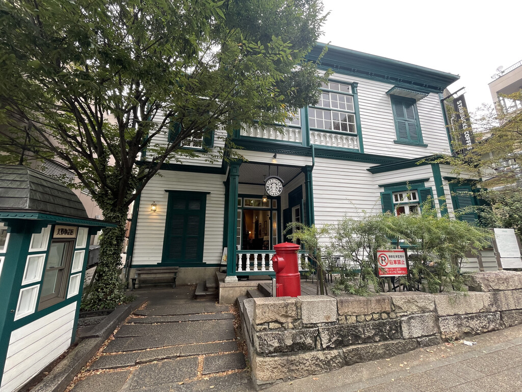 去北野异人馆,路过北野坂にしむら珈琲店,冰拿铁和卡布奇诺,南瓜蛋糕;