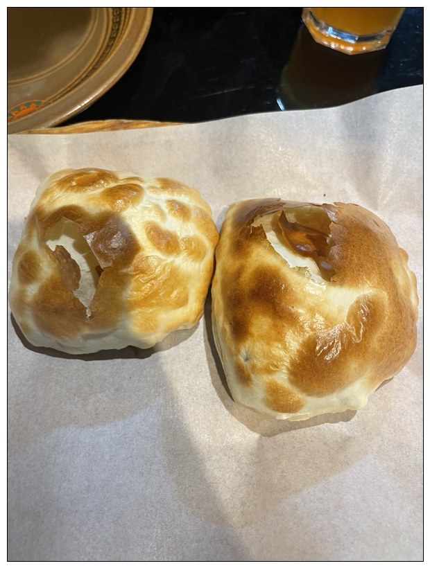 眼大肚子小,点了抓饭烤串烤包子包菜炒囊和卡瓦斯。嗯,其实吃不下这么多,但又不得不点。想比较一下和上海的不同。