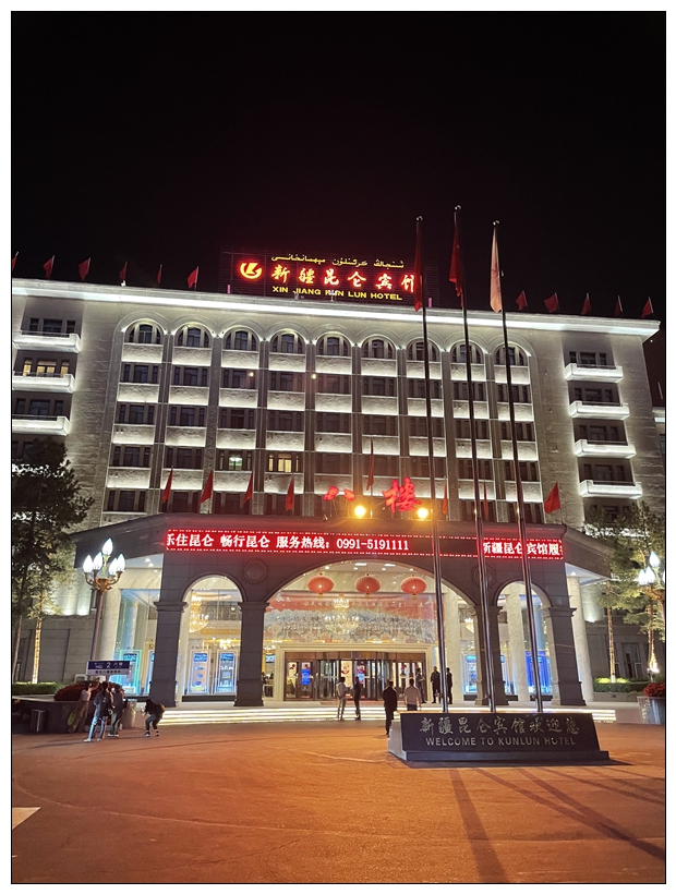 9月6日,上海出发,东航直飞,5h到新疆首府乌鲁木齐。下了飞机晚上7点半左右,叫了网约车,出机场赶上晚高峰。哦,乌市的晚高峰是7点,天还是亮的,晚高峰的乌鲁木齐街道好堵。到了传说中的昆仑宾馆,办完入住后的第一件事情,是觅食。刷点评看排名锁定附近1.8km的穆沙烧烤。既然不远,便散步过去。