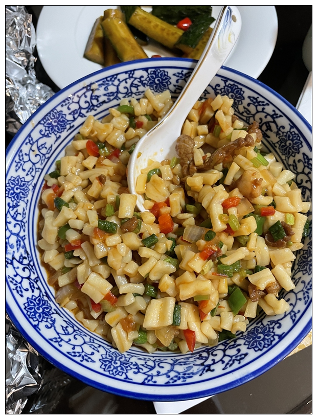大十字距离南门很近,在南门广场,远远就能看到汗腾格里清真寺的穹顶。因为找厕所去了附近的新华书店,看到了好玩的事情,只是书店不让拍照。书店一楼开了家奶茶店,叫阿凡提奶茶。点了奶皮子咸奶茶,18元,温热,味道很特别,也很好喝。拿着奶茶继续出发,路过陕西大寺,大门紧闭。继续走,边走边纠结着是否要午饭。说话间就来到新疆民街附近。新市路和胜利路十字路口有很多本地餐厅和小吃。开在路口的胡祖如穆美食馆人气爆棚。路过看了看,全是本地人。犹豫再三没进去,旁边小店买了烤包子,继续赶路。包子不怎么好,还没吃完就抬头看到新疆民街。沿胜利路向南百十来米,到了新疆民街跟前,大大的布告,装修。这时确实有点饿了。龙泉街的谢热富烤包子店买了肉馕,10元,可真是好吃。站大街上炫到饱。这里距离大巴扎就很近了。进到大巴扎不一会,就开始零星有点小雨。速速逛了逛,玉雕和英吉沙小刀印象深刻。