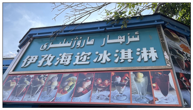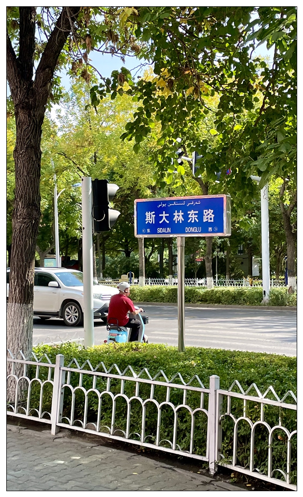 离开喀赞其乘出租车去六星街,遇到逗逼哈萨克司机。我问如何区分哈萨克人和维吾尔人?他说,哈萨克、蒙古、锡伯族是亚洲血统,维族是欧罗巴血统。所以骨相还是不同的。后来查了查,才知道,伊宁常驻人口来自13个民族,太深刻体会了一路见到的宣传标语:要像石榴籽一样团结在一起。