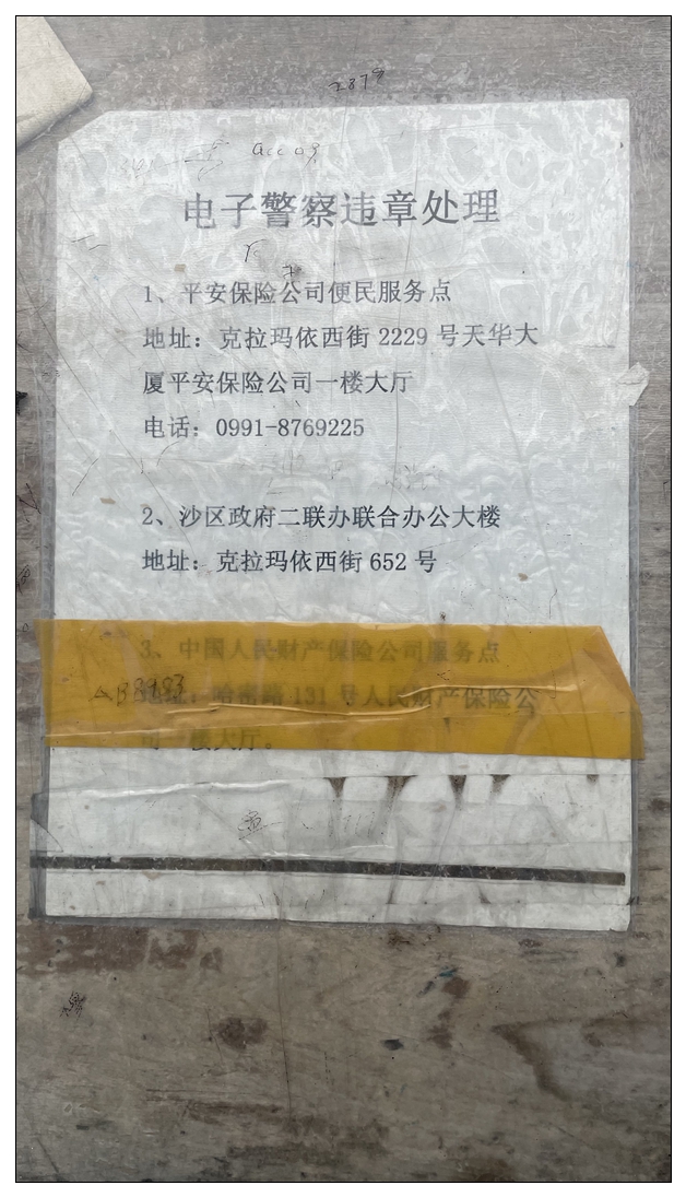 新疆日记21 0926 乌鲁木齐 Posted on 2025-04-24 Views: 今天退了房,先去沙区交警大队处理违章,200块扣1分。辗转找到处理违章的地方,这里上午13:30下班,15点上班。运气好,上午下班前压尾处理完。转移到离机场较近的宜必思机场店。 去附近羊村小馆午饭。家常拌面,碎肉抓饭。饭后去加油,去机场还车。回来酒店收拾东西,晚上洗衣服,准备次日返程。 辗转找到办事地点▽