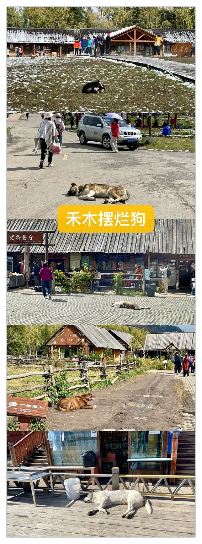 平台下来有两条路,可原路下台阶返回,也可骑马绕一圈下来。回到老村,穿过熙熙攘攘的人流,看到几条老狗,躺在路中睡大觉,对眼前的景象无感。